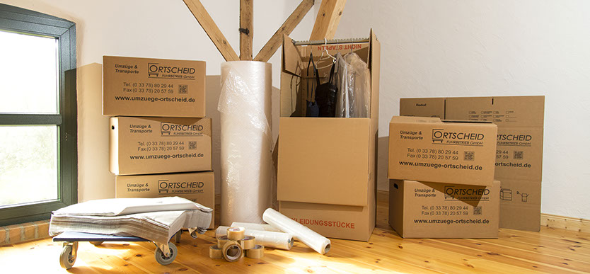 - Kartons und Verpackungsmaterialien, Möbeldecken und Arbeitshilfsmittel zur Verfügung
